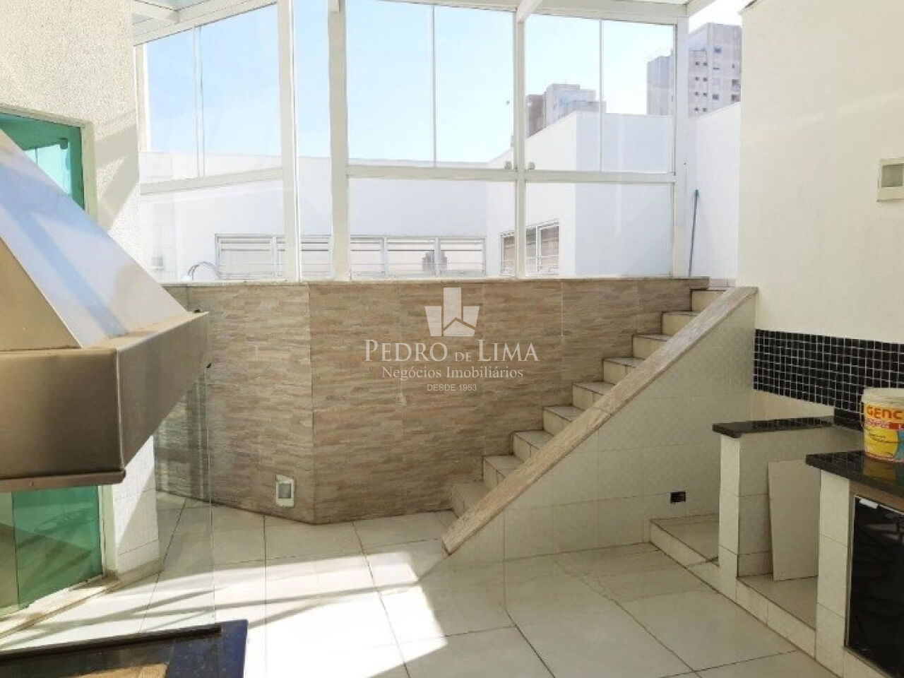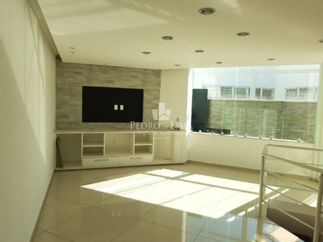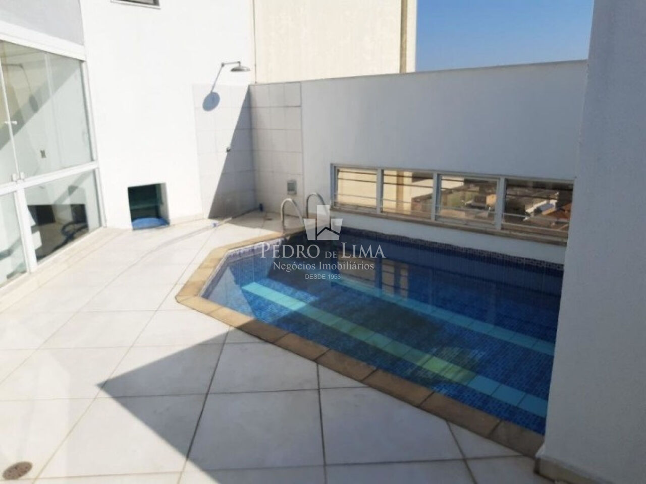 Sala de tv, 1 suíte com sacada, área de piscina e churrasqueira + sauna.