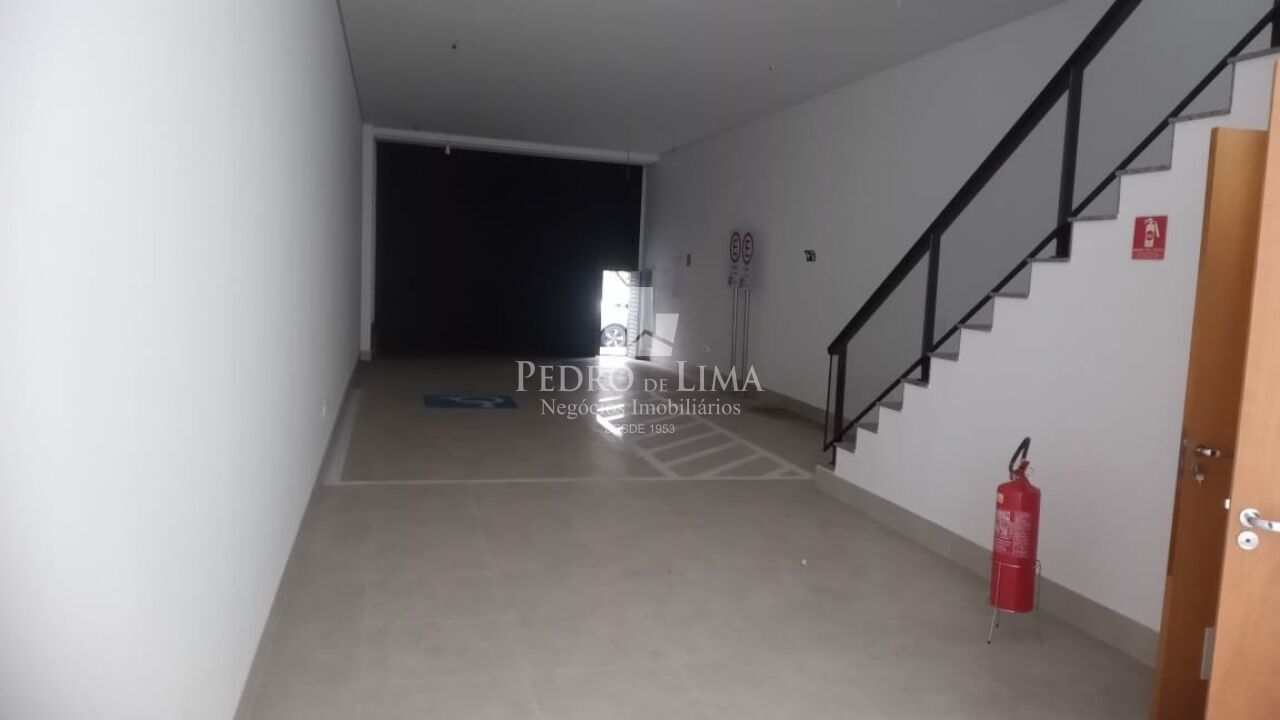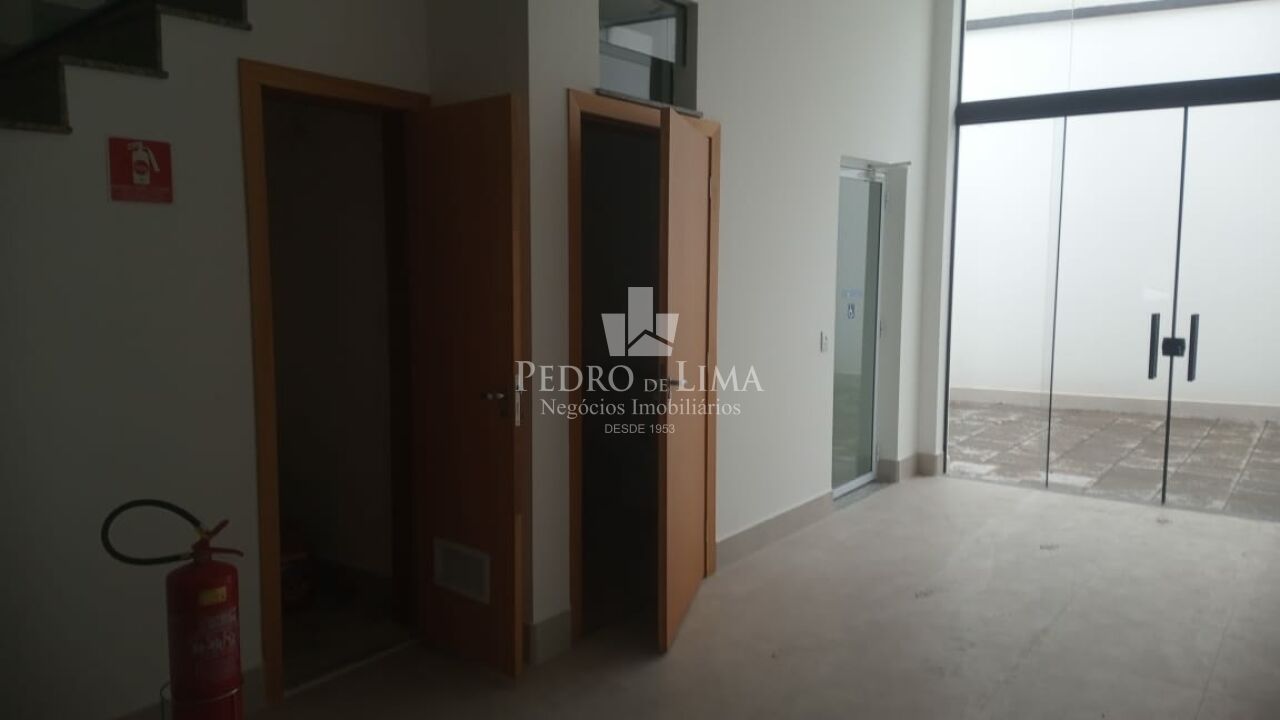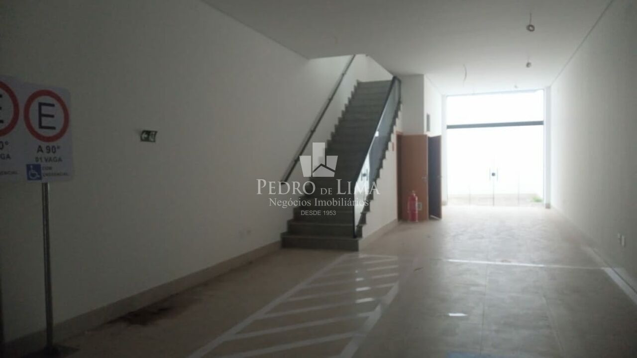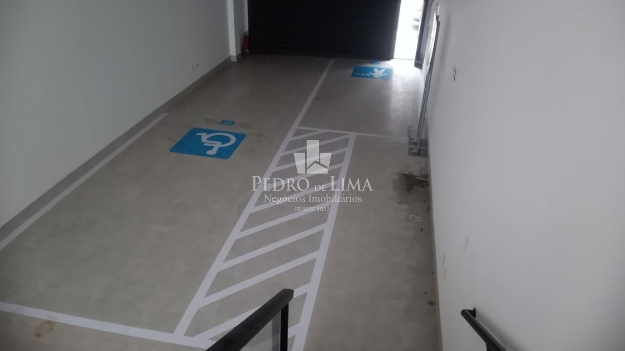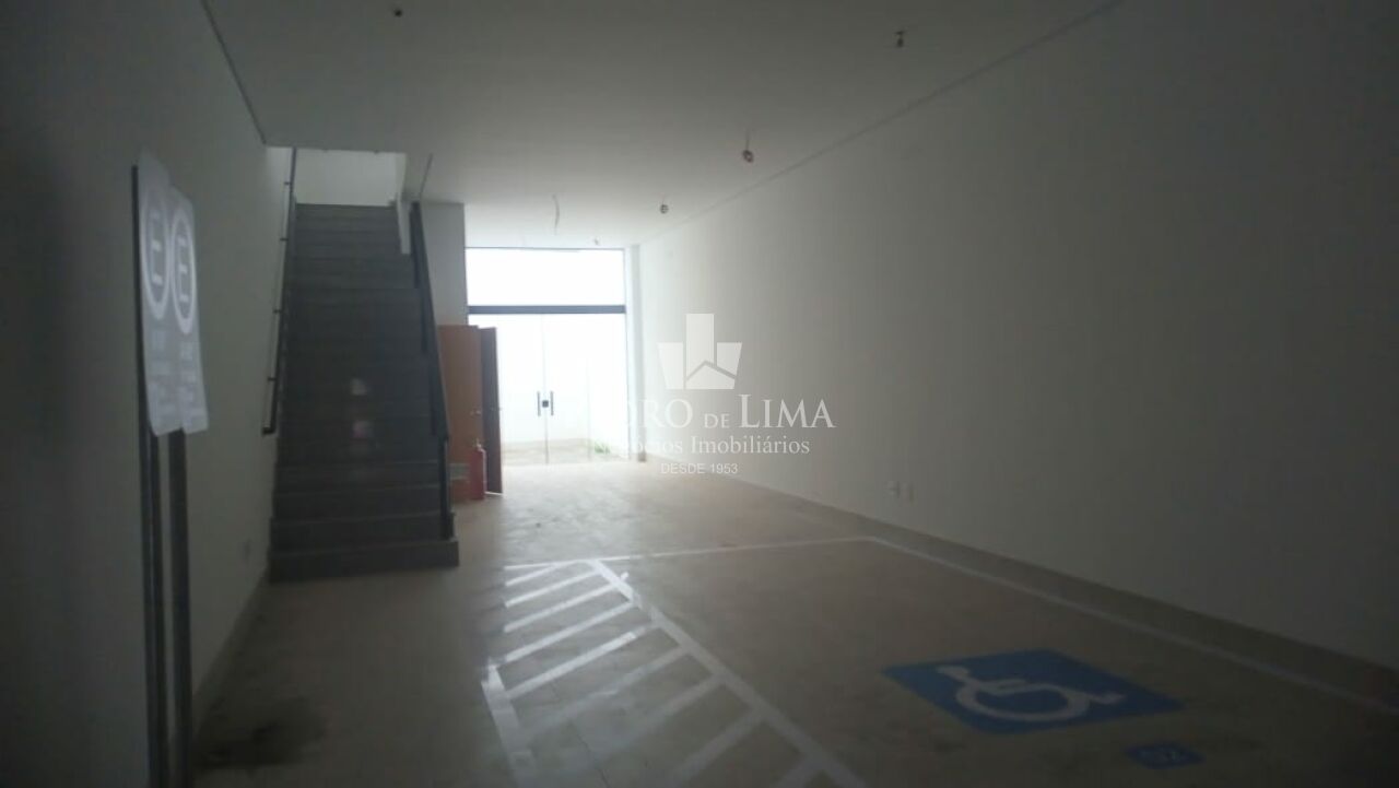 Salão principal contendo 110m em vão livre total, com pé direito de 4,5m, piso todo em porcelanato acetinado novo na cor cinza, infra de ar-condicionado instalado, porta automatizada, banheiro de acessibilidade, elevador plataforma de acessibilidade, fundos área de ventilação e iluminação.