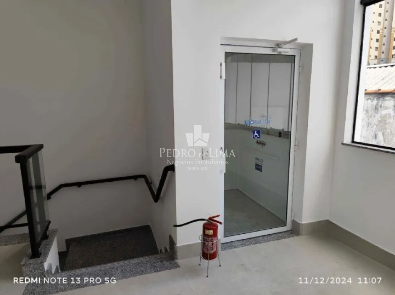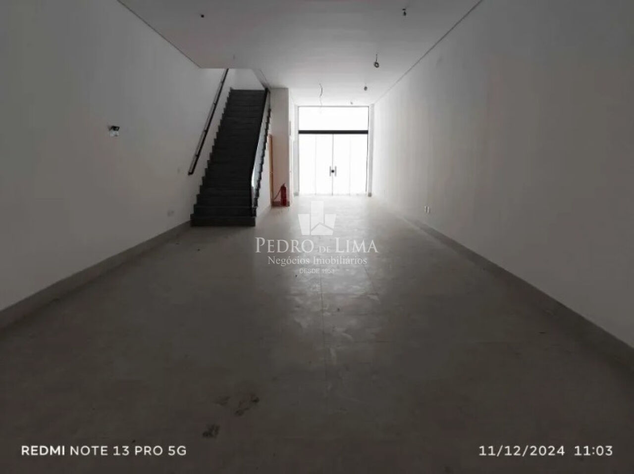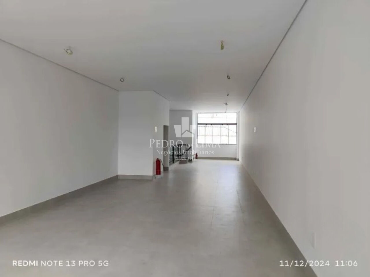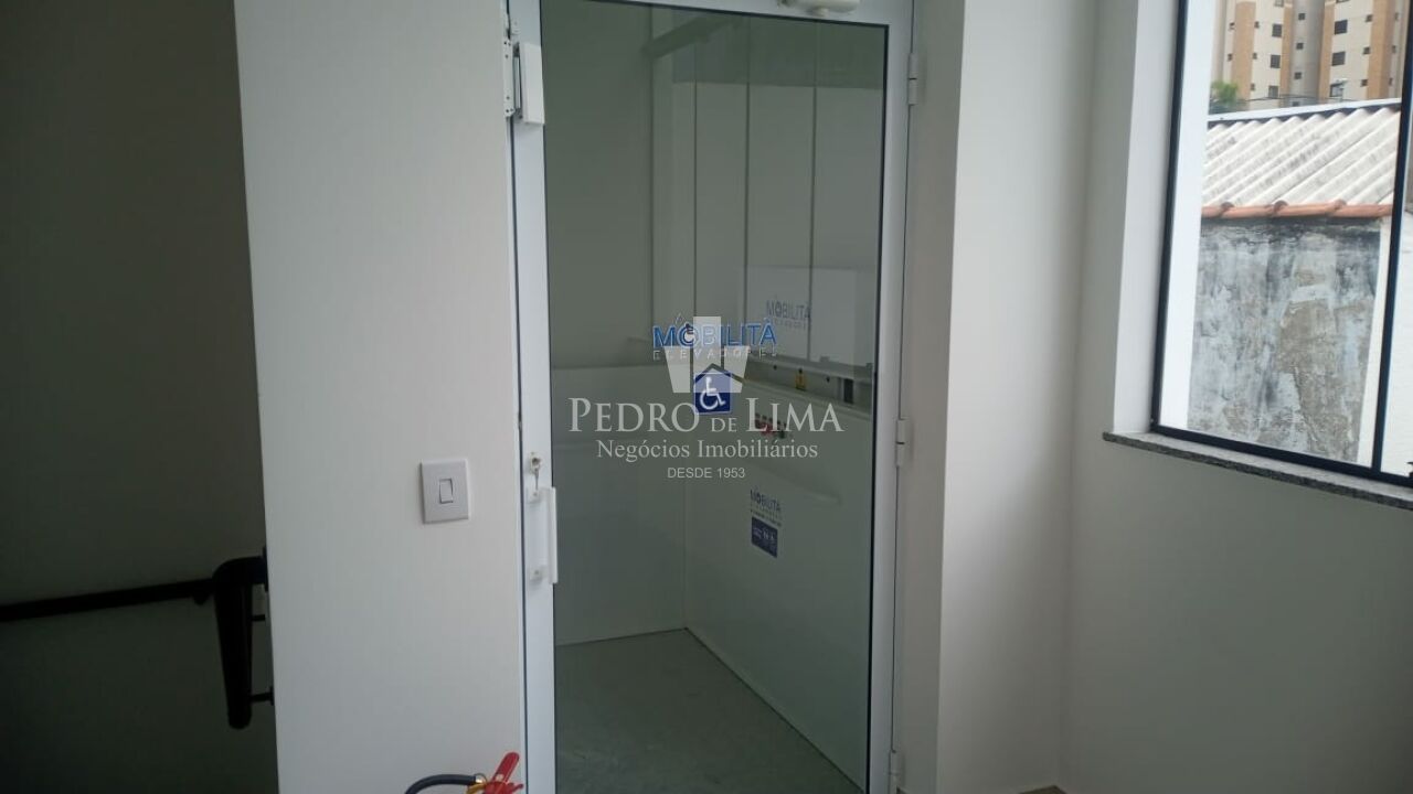 Salão principal contendo 110m em vão livre total, com pé direito de 4,5m, piso todo em porcelanato acetinado novo na cor cinza, infra de ar-condicionado instalado, porta automatizada, banheiro de acessibilidade, elevador plataforma de acessibilidade, fundos área de ventilação e iluminação.