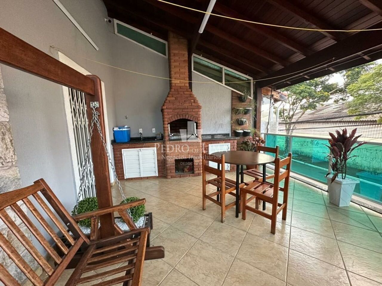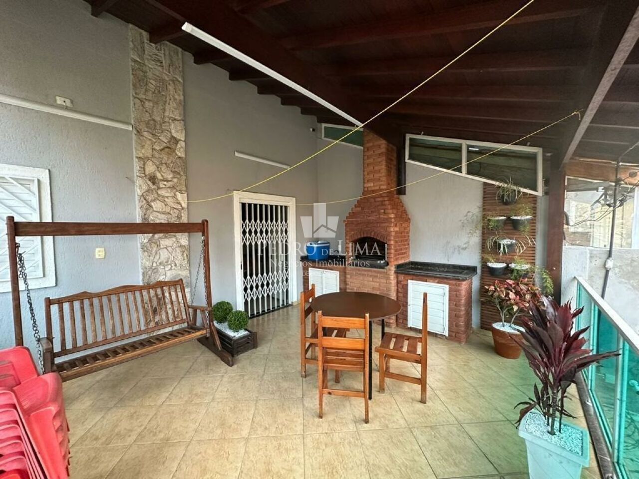 Com lavanderia externa coberta e área de churrasqueira com dois ambientes.