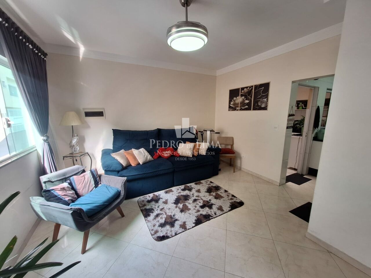 sala 2 ambientes, em piso porcelanato, arejada
