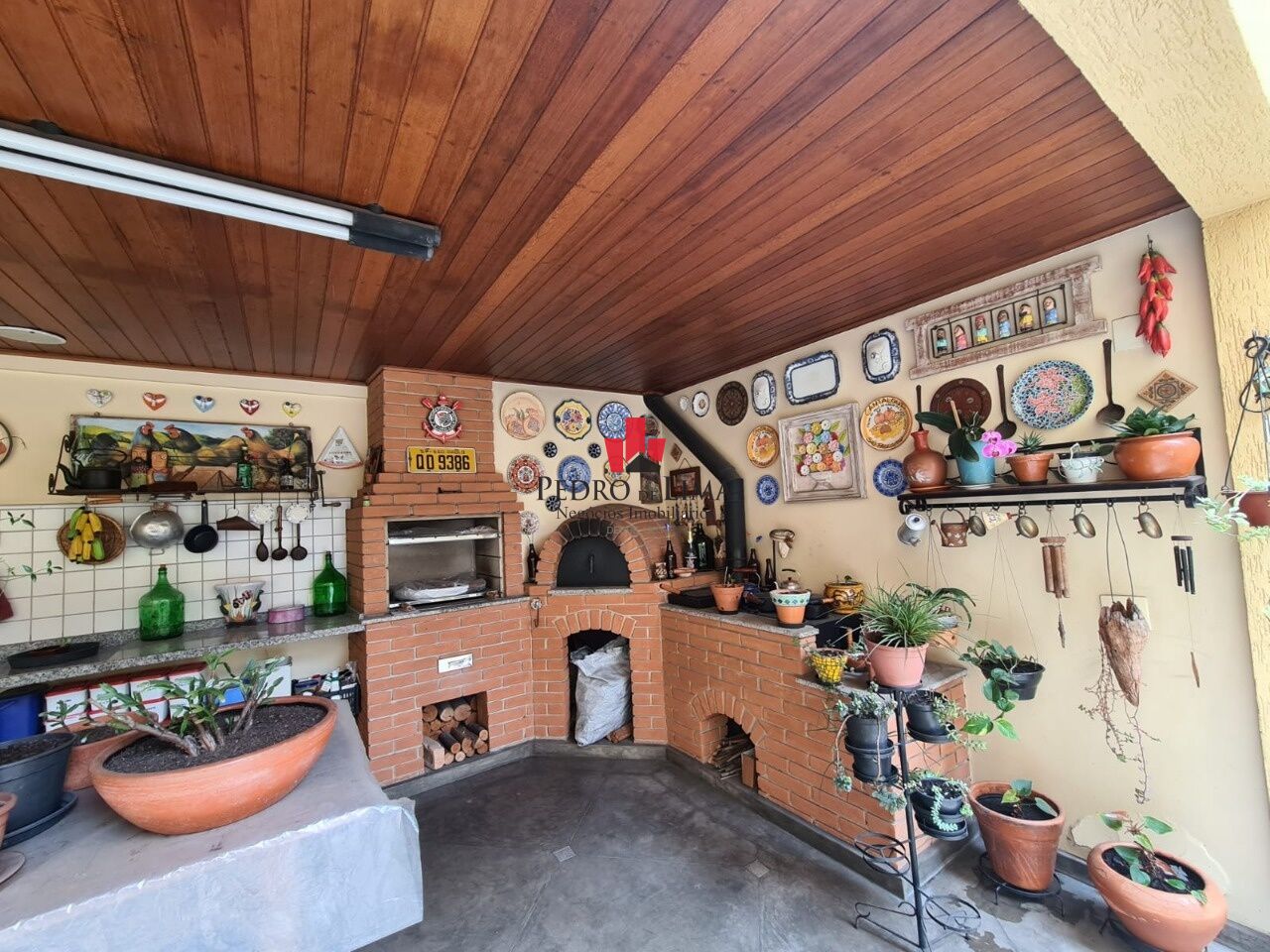 Área Gourmet (Churrasqueira, Forno Pizza, Fogão Caipira) Garagem 5 carros + Depósito Suíte Empregada.